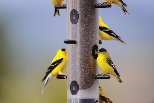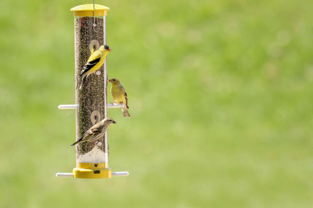 Finch Feeders: Using a specialty feeder, such as a finch feeder, will result in squirrels being unable to reach into the very small ports of the feeder for the finch food.